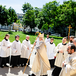 Am 10. Mai weihte Weihbischof Franz Scharl in der Pfarrkirche St. Leopold Donaufeld sieben Männer zu Diakonen für die Erzdiözese Wien. Die Kandidaten kommen aus verschiedenen Gemeinschaften: drei aus dem Wiener Priesterseminar, einer aus dem Benediktinerpriorat St. Josef in Maria Roggendorf und drei aus dem diözesanen Missionskolleg „Redemptoris Mater". Manuel Rennhofer, Joachim Loshehand und Julius Moses Münzer kommen aus dem Wiener Priesterseminar, P. Leo Maria Zehetgruber gehört dem Benediktinerpriorat St. Josef in Maria Roggendorf an drei weitere Kandidaten stammen aus dem diözesanen Missionskolleg „Redemptoris Mater“. Diese Vielfalt unterstreicht die Breite der geistlichen Berufungen in der Erzdiözese. Wir waren mit der Kamera dabei.
