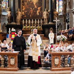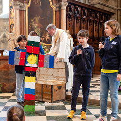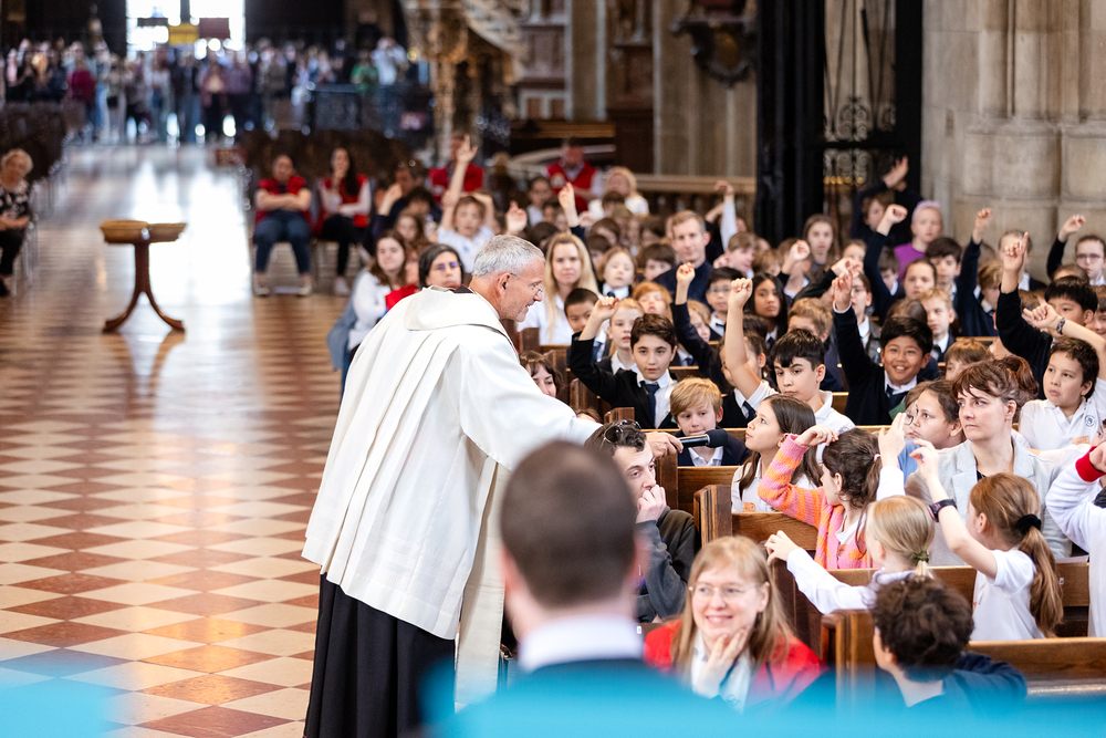 In Stationen konnten die Schülerinnen und Schüler Episoden aus dem Leben des Heiligen Klemens durchspielen, hören und gestalten. Beim Gottesdienst im Stephansdom feierte Generalvikar Nikolaus Krasa mit den Schülerinnen und Schülern, Schulseelsorgerinnen und Schulseelsorgern, Pater Dominic O’Toole (Kirchenrektor der Redemptorist von Maria am Gestade) und Dompfarrer Toni Faber. Wir waren mit der Kamera dabei.